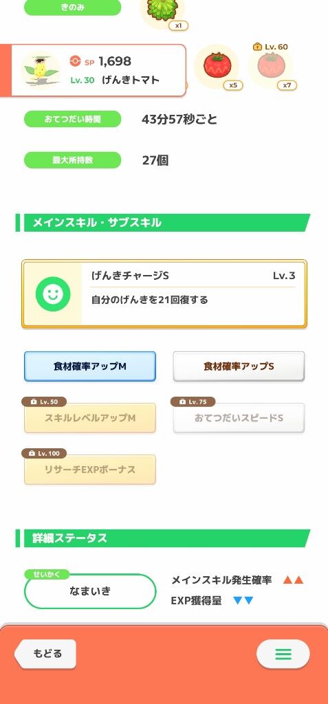 このまま50まで上げて食材M獲得したら使えるようになるのかな