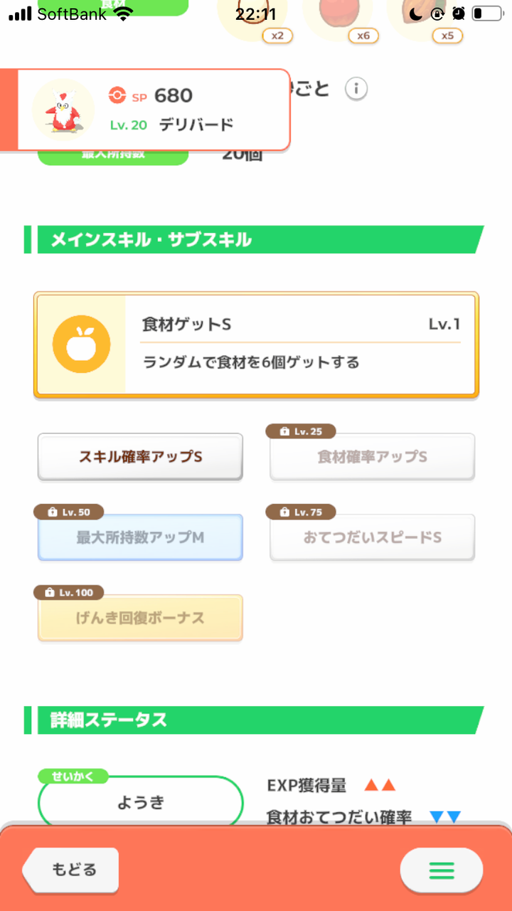 うちの初期ピカは食確Sと性格で食確↑なんだが、食材がABCなんだよなぁ。