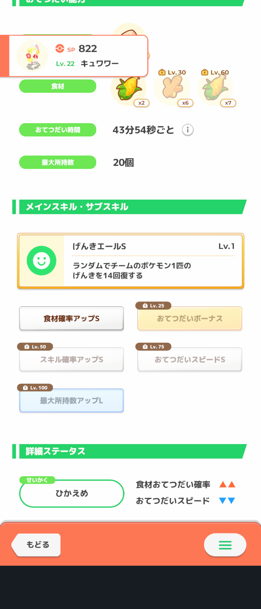 まあ無駄を省いて食材に特化したクマがライバルというのがキツいというのもあるけど、他の食材ポケとエナジー換算で比較しても結局2割くらい劣ってるしな