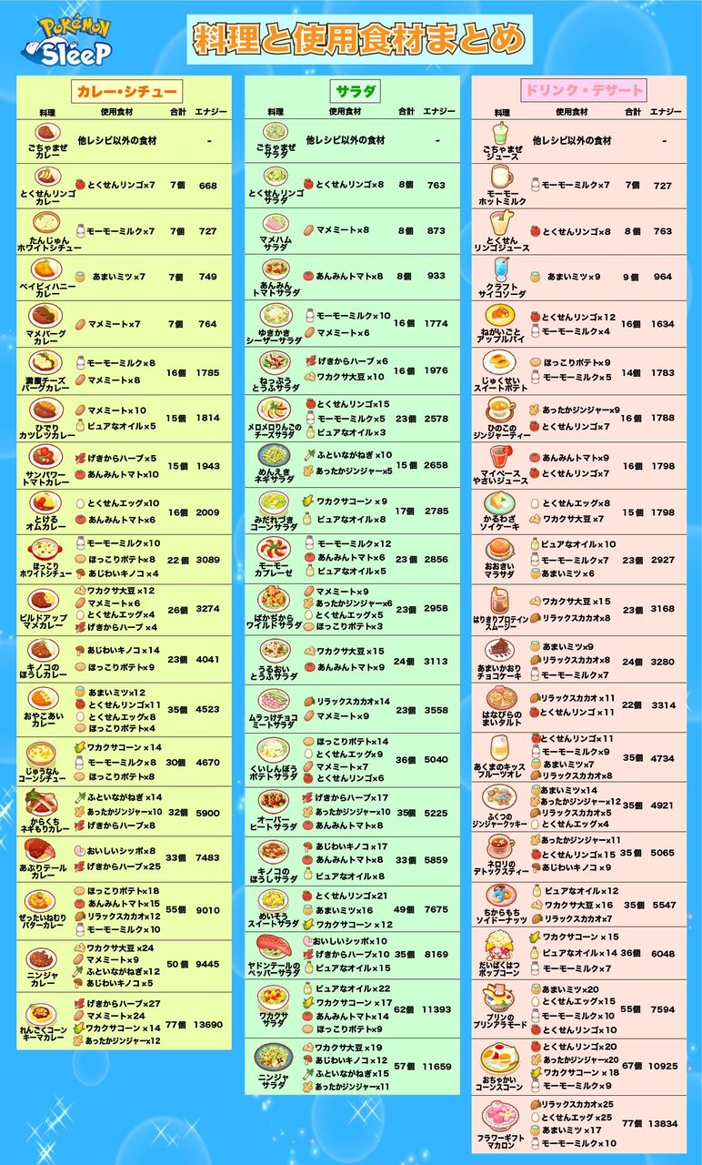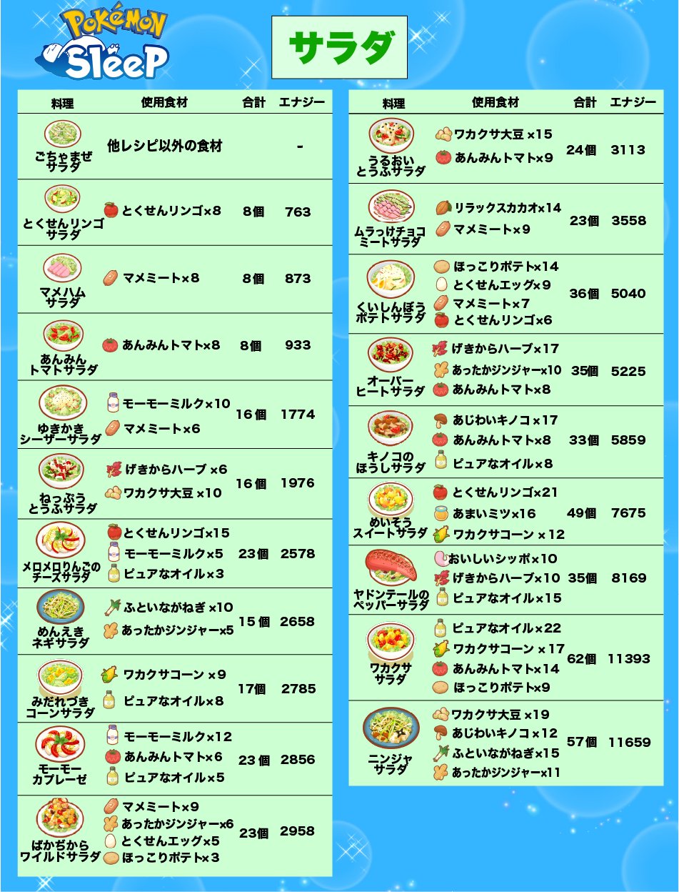 【ポケスリ】新レシピが新たに6種類実装キタ━━━━(゚∀゚)━━━━!!!! 2024年10月02日 カテゴリ:ポケモンスリープ(ポケスリ)まとめ 「めざめるパワーシチュー」「ピヨピヨパンチ辛口カレー」「まけんきコーヒーサラダ」「クロスチョップドサラダ」「スパークスパイスコーラ」「はやおきコーヒーゼリー」が追加!新レシピこれで結構環境変わるみたいですね!特にカイリュー、カメックスあたりが型落ちしてるらしいです人気コミックランキング人気ゲームランキング 人気楽天デイリーランキング 「ポケモンスリープ(ポケスリ)まとめ」カテゴリの最新記事 コメントする コメントフォーム 名前 コメント 記事の評価 リセット リセット 顔 星 情報を記憶 コメントを投稿する