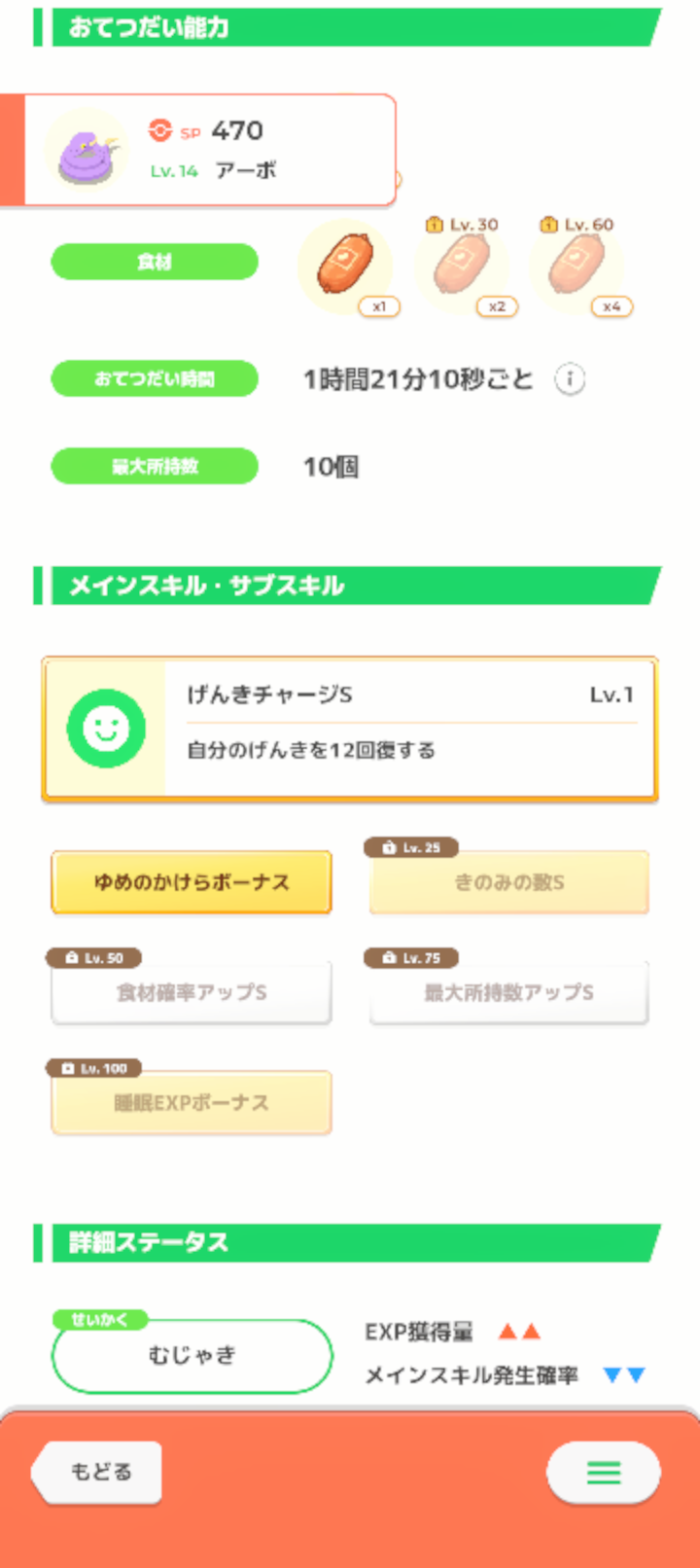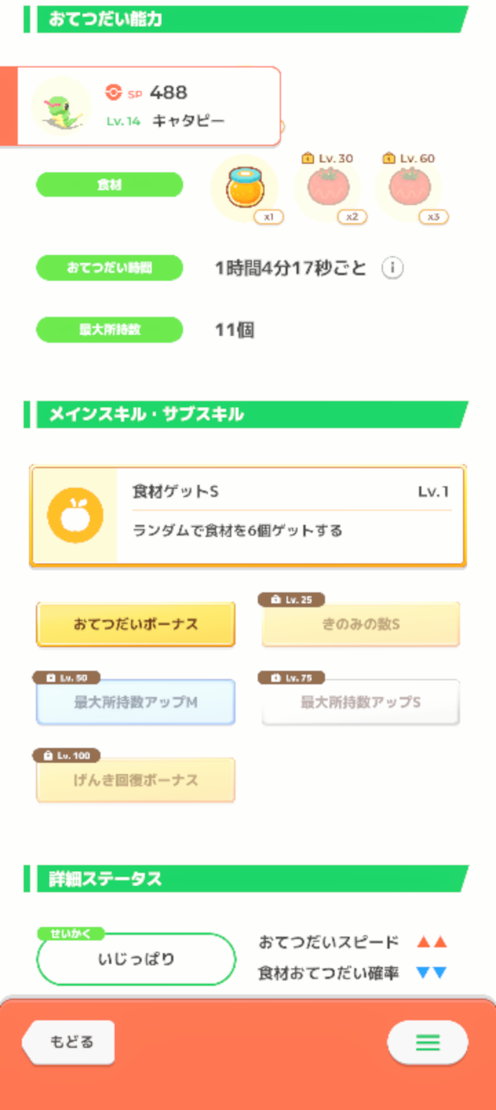 残り一枠は食材確率を積みまくったAAAに任せることが多いうちの環境だと、きのみにおてボは外せなくなってしまった