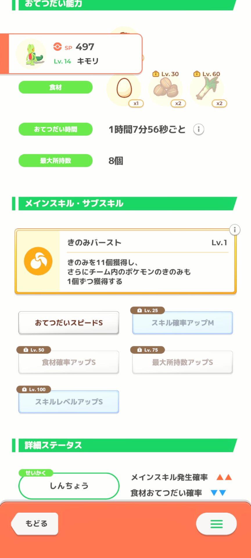 キモリ スキル きのみバースト 卵 コーヒー ネギ