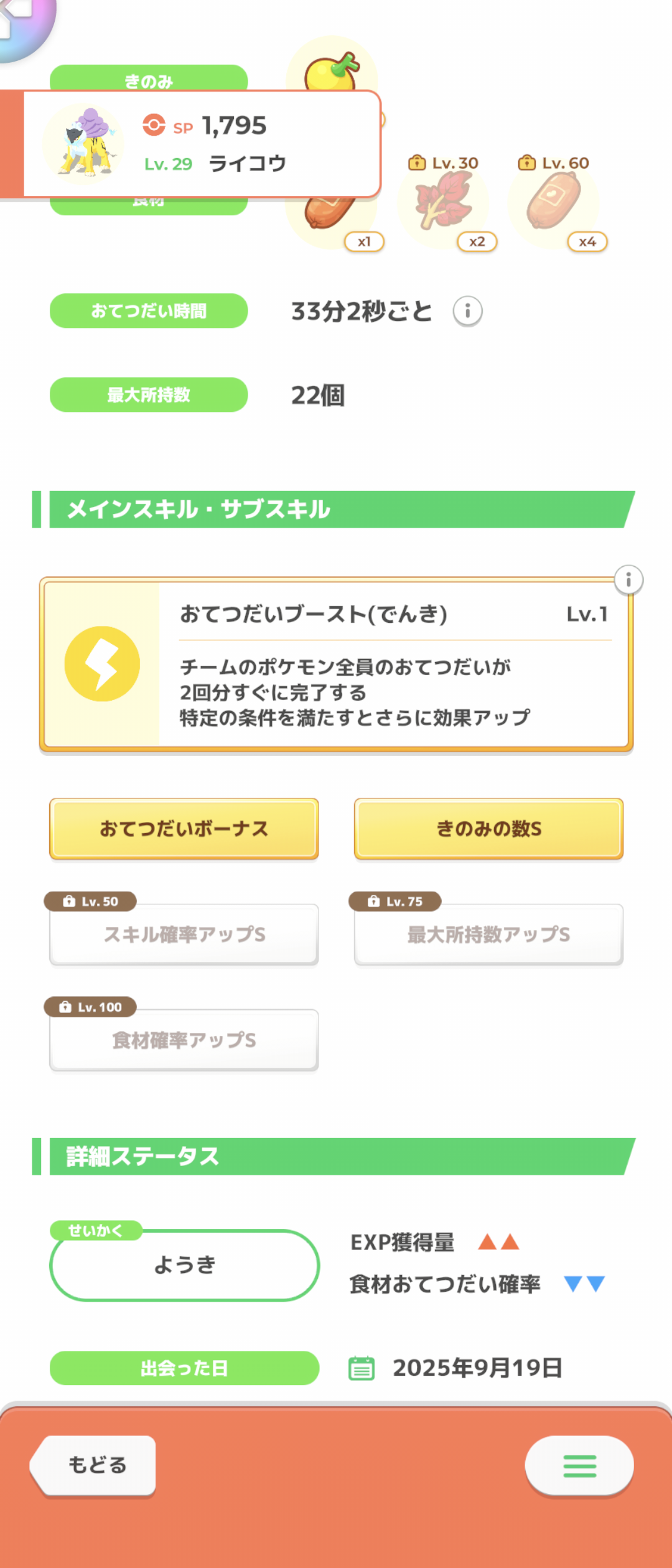 強いエンテイはいるけど料理中心にやってるから、タイプ染めとかもそもそもやらずに一発5回のお手ブで食材集めの補助くらいしかさせてないな